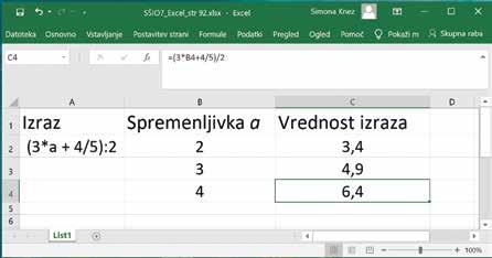 Vrednost algebrskega izraza lahko izračunamo šele takrat, ko poznamo vrednosti za posamezne spremenljivke