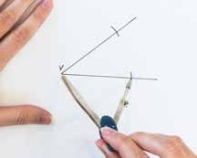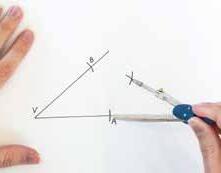 Na krakih s šestilom poiščemo točki A in B, ki sta enako oddaljeni od vrha kota Obe točki ležita na krožnici s središčem v točki V