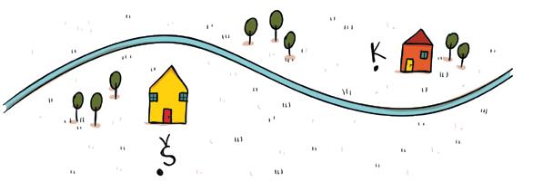 **11 Špela in Kaja stanujeta vsaka na drugi strani potoka Ugotovi, kje ob potoku si morata urediti skupen kotiček, da bosta obe enako oddaljeni od njega Opiši postopek