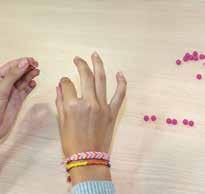 komplet, ki vsebuje 15 rumenih, 16 roza in 17 zelenih perlic Perlice posamezne barve bo razdelila v enake skupine