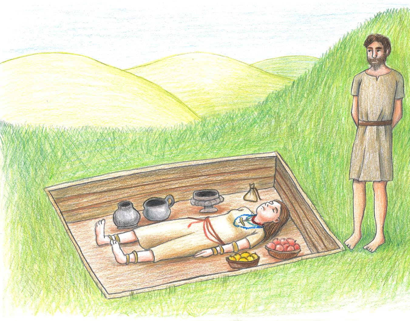 Prehod v drugi svet so ljudje povezovali s potovanjem, zato so pokojniku v grob dodali hrano, prijačo ter predmete, ki so pokojnika povezovali z vsakdanjim življenjem, npr. orožje in nakit.