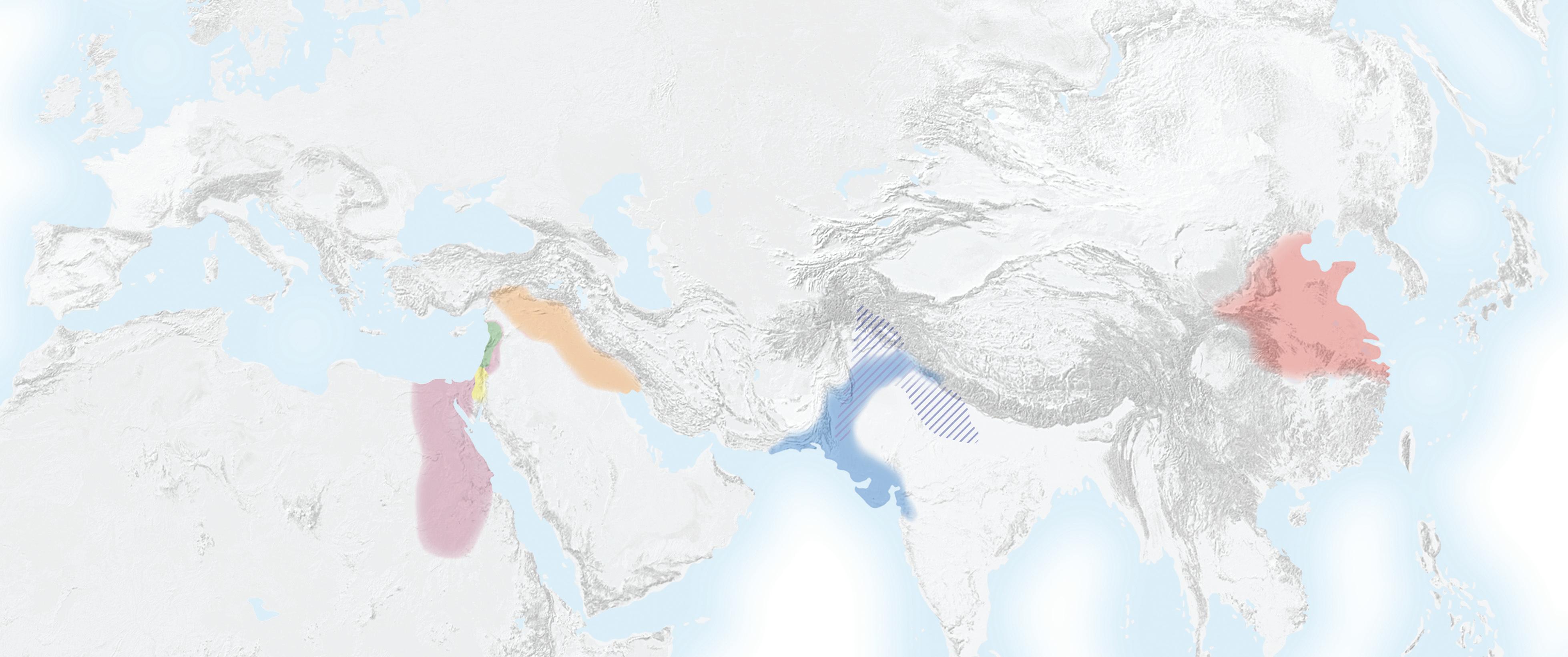 Civilizacije so se najprej razvile na območju rodovitnega polmeseca. To območje je obsegalo pokrajino Mezopotamija med rekama Evfrat in Tigris, Egipt ob reki Nil ter južno Turčijo.