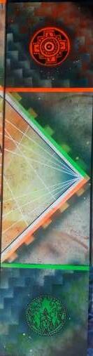 Obra: PORTAL - UKU PACHA Técnica: Mixta s/ fibrofácil Medidas: 44 X 183 cm. Autor: Rolando Veliz