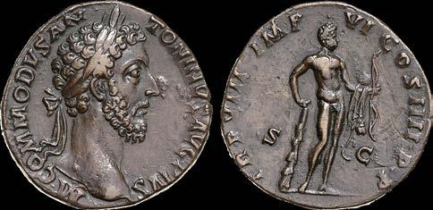 Van vijand tot god Commodus stierf twee jaar voor zijn vergoddelijking, waardoor de apotheose niet op de gebruikelijke manier plaatsvond. Normaliter werd de vergoddelijking voltrokken wanneer het lichaam van de keizer werd gecremeerd, waarbij het moment dat het vuur werd aangestoken de transformatie van keizer naar god in gang zette.9 De hemelvaart van de keizer werd gesymboliseerd door een adelaar die uit het vuur wegvloog. Omdat dit niet langer mogelijk was, verklaarde Severus simpelweg dat hij Commodus vergoddelijkte en liet munten slaan ter herdenking van deze gebeurtenis.10
