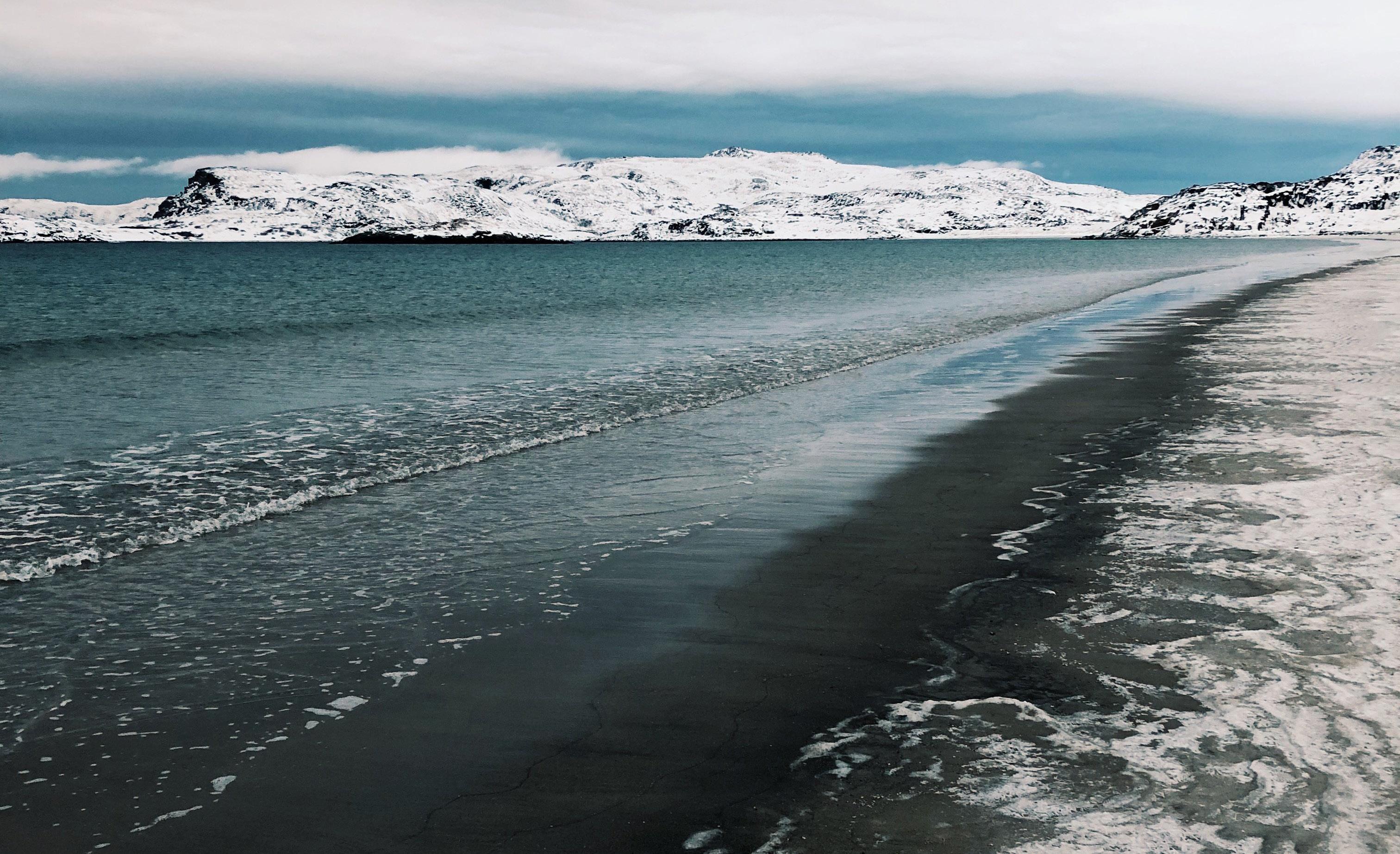 Frigid waves break white Wearing pinnacles of rock Into dust and sand
