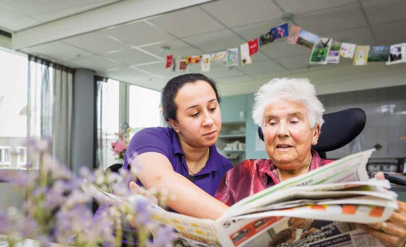 me om haar te helpen. Ze was zo blij, dat ze de hele dag bleef lachen. Dat maakt mijn dag helemaal goed. Of als een bewoner na het weekend meteen vraagt: ‘Waar was je al die tijd?’ Dan weet ik dat hij me een beetje gemist heeft. Dat soort momenten maken mij gelukkig en geven mij energie.”