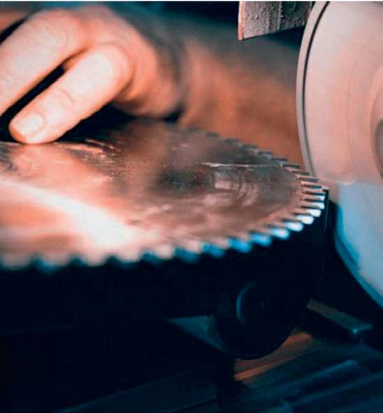 machines bepalen het beeld, maar ze doen hun werk feilloos. Kwaliteit zie je ook terug in het handwerk, zoals het verlijmen van vellen schuurpapier tot grotere lengtes.