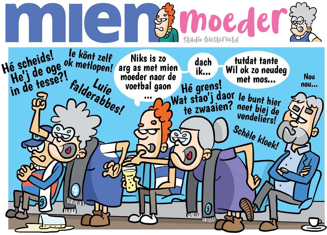 M ien oma vertellen vrogger an mi-j, dat ik is onmeundig hellig bun eworden. Ik was toen dree jaor old en wi-j lepen op straote in Amster dam. Veur ons leep ne vrouwe met nen kinder wagen. Zee was patat an ’t etten oet nen plastik bäksken. Toen zee de patat op had, smet zee ut bäksken zo van zik of. Ik zag ut gebeuren en wor den toch hellig. Ik begon te bleren dat zee gin pröttel op de grond moch gooien, dat zee dat in de prullebak mos doon. Nog ginnen meter wie terop, ston de vulnisemmer. De vrouwe draeien zik umme, zee mos der wal um lachen en zei dat ik geliek had. Zee hef heur pröttel van de grond op-eraapt en netjes in de container egooit. Jao, dree was ik en ik wus toen al hoo of ut mos.