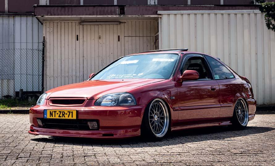 H onda is het favoriete merk van Kenny. Zijn vader Eddie is daarvoor medeverantwoorde lijk. De liefde voor de Japanse autofabrikant werd hem met de paplepel ingegoten. “Ze hebben kwaliteit, zijn betrouwbaar en onder houdsvriendelijk”, zijn de heren het eens. In 2007 raakte de Honda MB van Eddie total loss. Hij werd aangereden op de kruising bij Rou maat in Groenlo waar hij werkte. “Ik moest wat anders en vond de Civic EJ6 bij een dea ler. Ik was op slag verliefd. Het was de kleur, het model en hij verkeerde in goede conditie.”