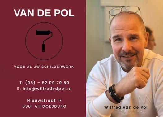 >08 Ulenpasweg 2E2 ’s-Heerenberg T: 0314-64 32 27 M: 06-13 00 61 96 www.dsrfood.nl UW cateringbedrijf in de Achterhoek Telefonisch tussen 08:30 - 18:30u: 06-51 39 73 86 doetinchem@dsrfood.nl www.caravanservice.nl CARAVAN SERVICE OOST NEDERLAND Specialist in onderhoud en schadereparatie voor caravans en campers (Wehl) De specialist in het aanmeten en vervaardigen van gebitsprotheses Ook voor het kunstgebit op implantaten (klikprothese) Geen verwijzing nodig van een tandarts Kosten worden grotendeels vergoed vanuit de basisverzekering Tandprothetische praktijk J. Hoogendijk Dennenweg 28 Doetinchem T 0314 - 36 43 63 www.tandprotheticus-jhoogendijk.nl ҆҆ ҆҆ www.tpcdoetinchem.nl Zoek je een stageplek, werkplek of activeringsplek in de techniek? Zit je in de bijstand of bewind en zoek je een goede baan of opleiding? Zoek je een opleiding of baan in de techniek?