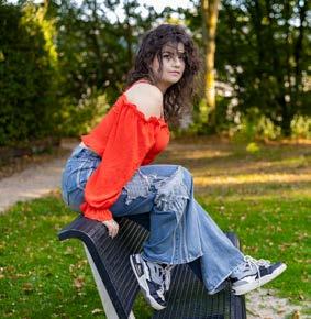 24,99), die dankzij de levendige print meteen een frisse en energieke uitstraling geeft. Dit wordt gecombineerd met een prachtige jeans van Cambio (€ 49,99), een merk dat bekendstaat om zijn perfecte pasvorm. De denim geeft de outfit een casual-chique touch en maakt het geheel draagbaar voor iedere gelegenheid. Als finishing touch draagt Judith een tijdloos jasje van Claudia Sträter (€ 37,50) in een bruine tint. Dit item brengt rust in de look en laat de kleuren van de blouse nog mooier uitkomen” licht winkeleigenaresse Britt toe.