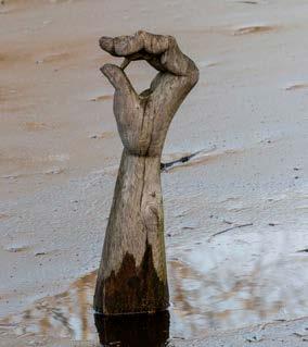Bij de splitsing ligt een grote poel met een kunstwerk van een hand erin: de Boelekeerl , een mythische boeman die als waarschuwing dient om ondernemende buurtkinderen weg van de poelen en moerassen te houden.