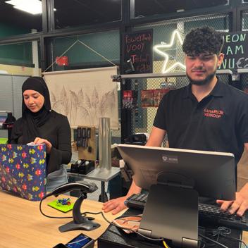 Onze cadeauwinkel, gerund door studenten. Bezoekers helpen, producten presenteren en de kassa bedienen.