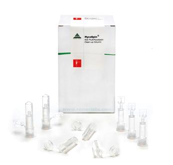 The MycoSpin® 400 Multitoxin column contains a combination of adsorbents designed for the purification of commodity extracts for subsequent LC-MS/MS multimycotoxin analysis.