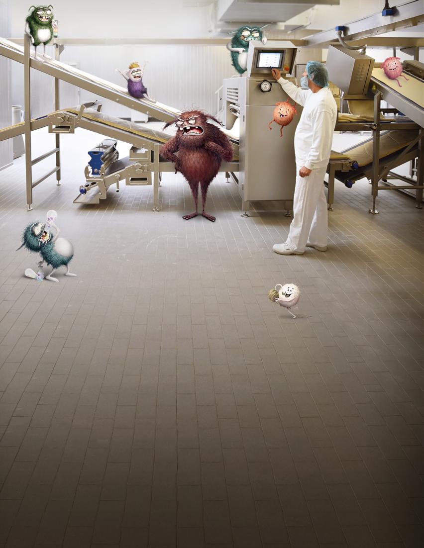 Die Lebensmittelsicherheit hängt zu einem großen Teil von den hygienischen Bedingungen in Lebensmittelproduktionen ab. Ein hoher Gehalt an Verderbnisbakterien kann die Haltbarkeit und Qualität von Lebensmitteln beeinträchtigen, während das Vorhandensein von Krankheitserregern (wie Salmonellen und Listerien) zu schweren Erkrankungen führen kann. Lebensmittelhersteller müssen darauf achten, dass ihre Produktionsumgebung sauber und frei von pathogenen Mikroorganismen ist, um eine Kreuzkontamination des Endprodukts zu verhindern. Doch wie wird das derzeit bewerkstelligt?