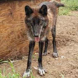 Atlas was a mostly feral wolfdog who had been running loose near Winnfield, Louisiana for close to two years after his family moved and left him there. We agreed to take him if he could be trapped. Our VP along with a wonderful woman who lived in Winnfield finally caught Atlas, but not until somebody shot him point blank in the face. He almost lost his life right when Trish was gaining his trust. His story is a particularly tragic one, but he will be forever safe with us. He is a fractured, broken soul and we love Atlas very much.