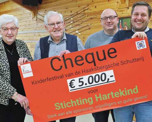 HAAKSBERGEN – En opnieuw mochten Femie en Joop Oosterkamp – namens stichting Hartekind - een vette cheque in ontvangst nemen. Vijfduizend euro, bijeengebracht door de vele honderden bezoekers van het supergezellige Kinderfestival 2025. En niet te vergeten: door de trouwe sponsoren. Het Kinderfestival, sinds 2011 vast onderdeel van de jaarlijkse schuttersfeesten, groeit maar door. Nóg weer meer kinderen kwamen zondag 7 september naar het Scholtenhagenpark dat bol stond van bruisend vermaak. Een vrolijke boel vinden ook Femie en Joop Oosterkamp. “Elk jaar gaan wij er heen. Dit festival is écht goed georganiseerd. Wat een kinderen en wat een plezier! Dan genie -