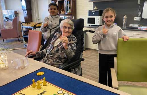letje te spelen tegen de basisschoolleerlingen. Zo gezegd, zo gedaan. Het Saalmerink verleende meteen haar medewerking. Dit resulteerde op 30 januari jongstleden in een bezoek van de basisschoolleerlingen aan enkele bewoners van het Saalmerink.