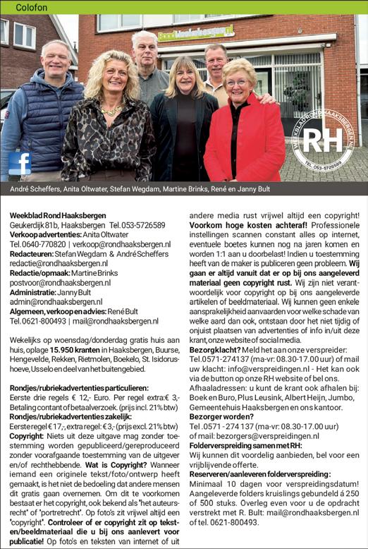 Weekblad Rond Haaksbergen Anita Oltwater verkoop & media-adviseur Tel 0640-770820 verkoop@rondhaaksbergen.nl