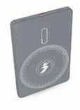 Compacte MagSafe-powerbank met draadloos opladen, 20 W USB-C snelladen en LED-indicator.