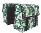 Dubbele waterafstotende fietstas (Green Leaves) met 36 L inhoud en reflecterende details.