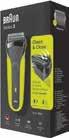 Elektrisch scheerapparaat met flexibele scheerbladen voor een gladde en comfortabele scheerbeurt, nat of droog te gebruiken.