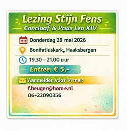 • Donderdag 28 mei 19.30: Lezing Stijn Fens over het conclaaf en eerste jaar van Paus Leo XIV in de pastorie.