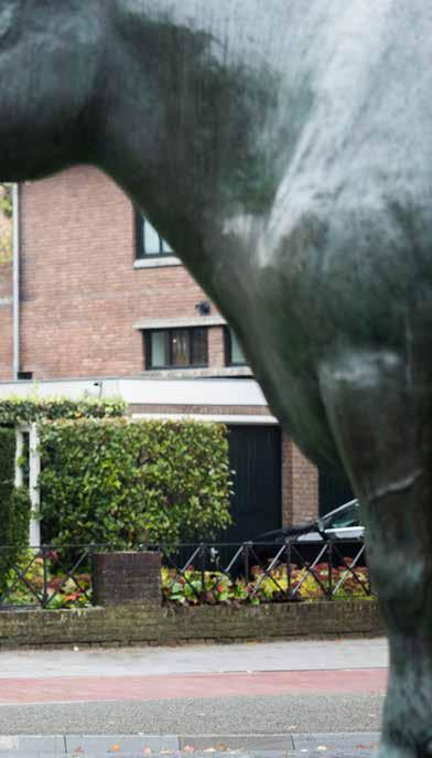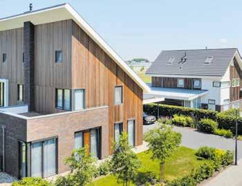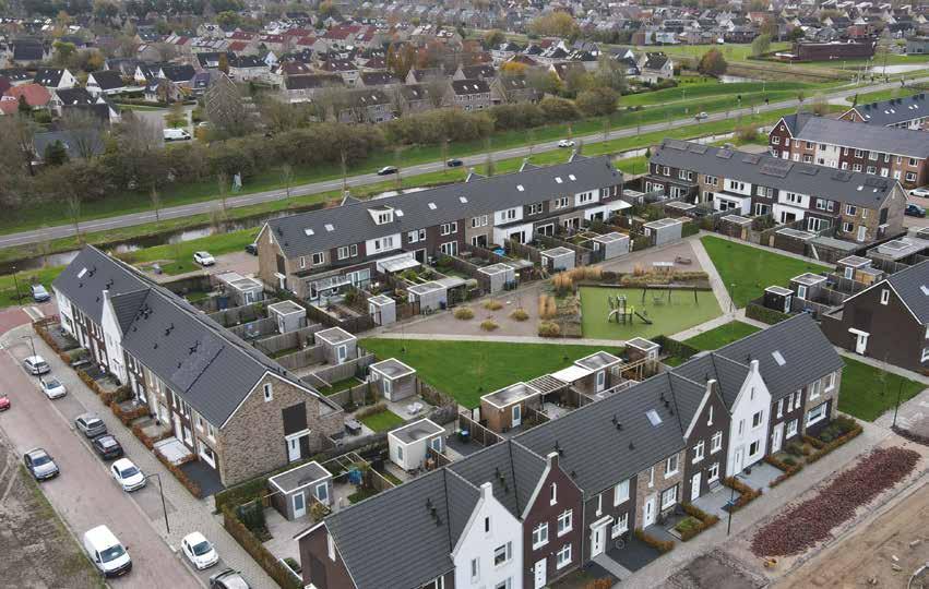 houden. Tuinen liggen altijd aan de voorkant van de woning, nooit is er een achtertuin. De tuin of het balkon moeten in een vloeiende lijn naar binnen lopen. Dat betekent veel glas. Glas waardoor je naar buiten kunt kijken, maar mensen ook naar binnen kunnen kijken. Dat bevordert de sociale cohesie en geeft buren de mogelijkheid een oogje in het zeil te houden, waardoor mensen langer thuis kunnen wonen. Langer thuis kunnen wonen en zorg voor elkaar heeft als voordeel dat er minder zorgvraag zal zijn en dus minder zorgkosten.’