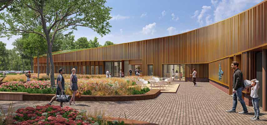 De nieuwbouw is meer dan een schoolgebouw: het wordt een leeromgeving voor de toekomst. Want wie in de bouw werkt, krijgt steeds meer te maken met materialen en technieken die nu nog nieuw zijn. “De ontwikkelingen op het gebied van biosbased en circulair bouwen gaan zó snel…,” zegt Van Bruggen. “Je móét als docent en student meegroeien.”