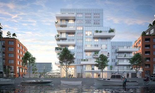 samengesteld uit meerdere gebouwen”, legt Poelman uit. De veelvormigheid en gelaagdheid, gevoegd bij de mix aan woningtypen, roept het beeld op van “een stadje an sich”, zoals hij het noemt. De getrapte opzet voorkomt een massieve wand en biedt doorzichten. “De vertrappingen maken ook meerdere daktuinen mogelijk”, licht Seckel toe. “Naast de biodiversiteit bieden die de bewoners een prettig uitzicht.”
