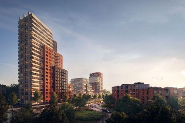 heeft de gemeente in 2016 een woonbestemming aan deze plek gegeven en een tender uitgeschreven.” Het gesprek in het bouwkantoor vindt plaats als Seckel samen met Bertil Poelman, directievoorzitter van Koopmans Bouw, terugkeert van een bezichtiging op de bouw. De uitvoering die in november 2022 van start ging is vergevorderd: het hoogste punt – het twintig verdiepingen tellende gebouw A – is bereikt en baksteen gevels zijn al deels aangebracht. Beide opdrachtgevers zijn nog onder de indruk van de rondleiding die ze hebben gekregen, waarbij ze hebben gezien hoe de tekeningen en berekeningen fysiek vorm aan het krijgen zijn. “Mooi om de passie van de bouwers mee te maken”, zegt Poelman. “Geweldig hoe deze vakmensen het project leven.”