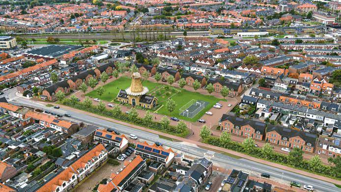Molenwerf in de Visbuurt ten oosten van het spoor. In het midden van een carrévormig park is een historische molen herbouwd; een verwijzing naar de zaagmolen van de houtwerf die hier ooit was. Daaromheen staan 34 splinternieuwe grondgebonden woningen. De woningen zijn ontworpen in de stijl van monumentale woningen uit de ernaartoe leidende Janzenstraat. “O, daar moet je echt even gaan kijken”, zegt de wethouder enthousiast. In de Visbuurt is een grotere woningbouwontwikkeling in voorbereiding op het voormalige sportpark Ruyghweg en nabijgelegen terreinen rondom de Spoorweghaven. Er wordt gestart met tachtig woningen; na 2030 zijn er in totaal vijfhonderd woningen in dit gebied gepland. Ook in Julianadorp staan de nodige nieuwbouwprojecten op stapel. Het dorp krijgt er de komende jaren ongeveer 900 woningen bij.