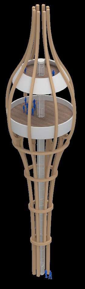 A floating space will be used for entertainment and sightseeing, gaining views and privacy from the heights.