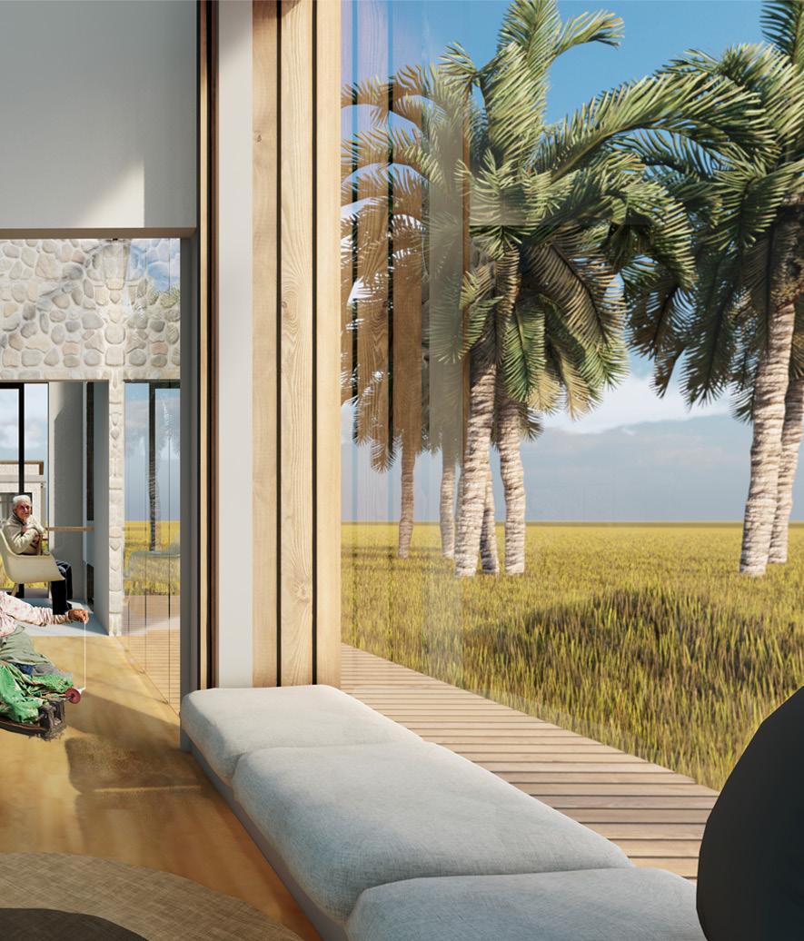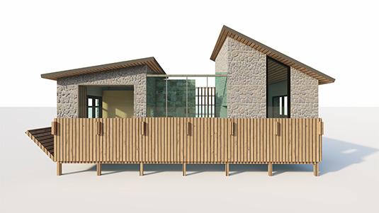 The concept was to design a house that represents the topography of the earth ing and shelter feeling safe. The house focuses on the comfort of people whether ture to its full capacity, favouring through the retractable decks surrounding