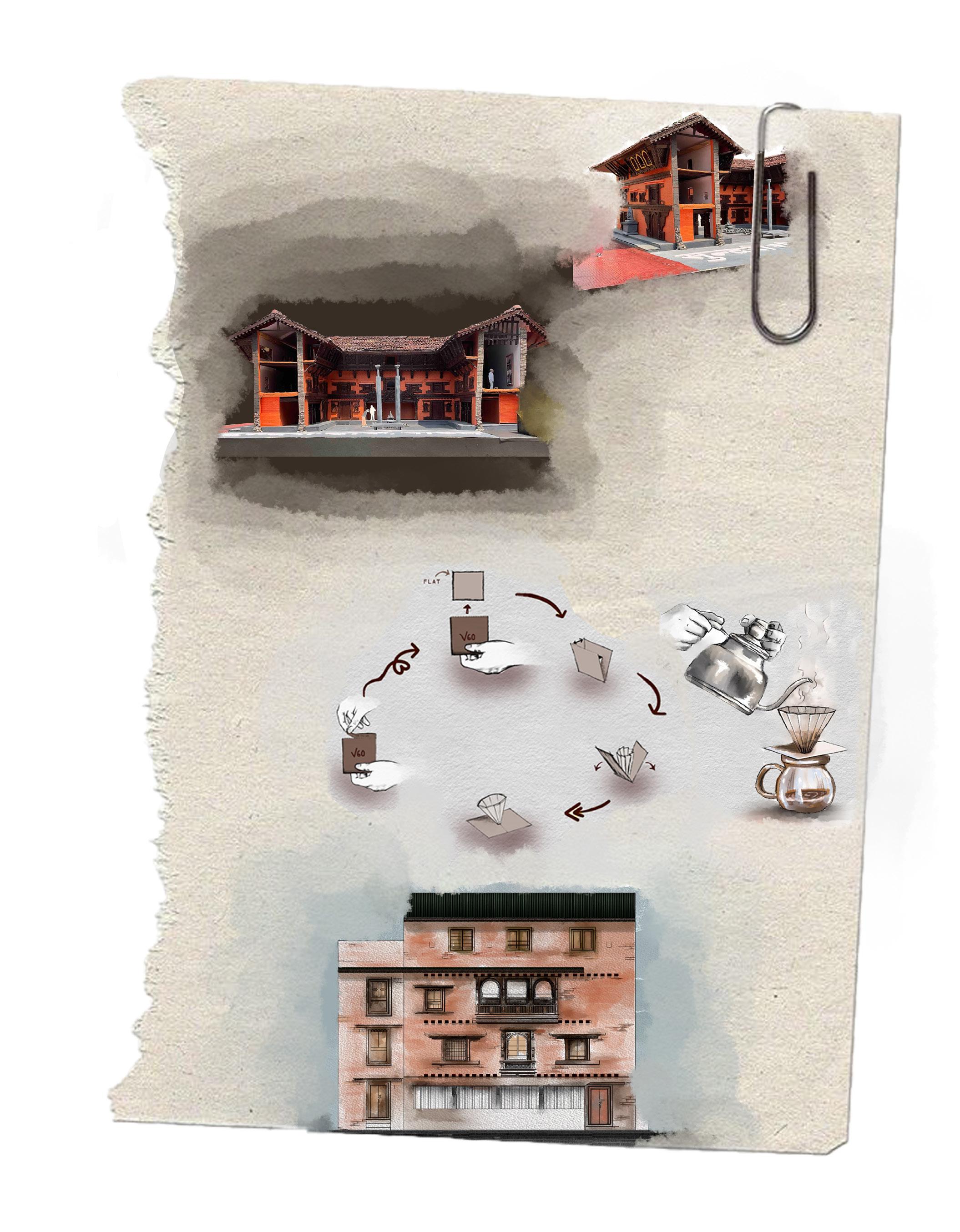 The historical Newar City of Banepa stands for “Place of Business” literally derived from its name “Bane” means ‘Business’ and “Pa” means ‘Place’. Banepa’s rich history as a hub of business and trade development serves as the foundation for this design. Central to the design is the motif of wheels, symbolizing the continuous movement and progress associated with trade and transportation. The circular forms not only reference the wheels of vehicles but also represent the cycles of commerce and the flow of goods and people through Banepa.Ergonomic seating follows the curvature of the circular structures, offering comfort and a unique visual experience.