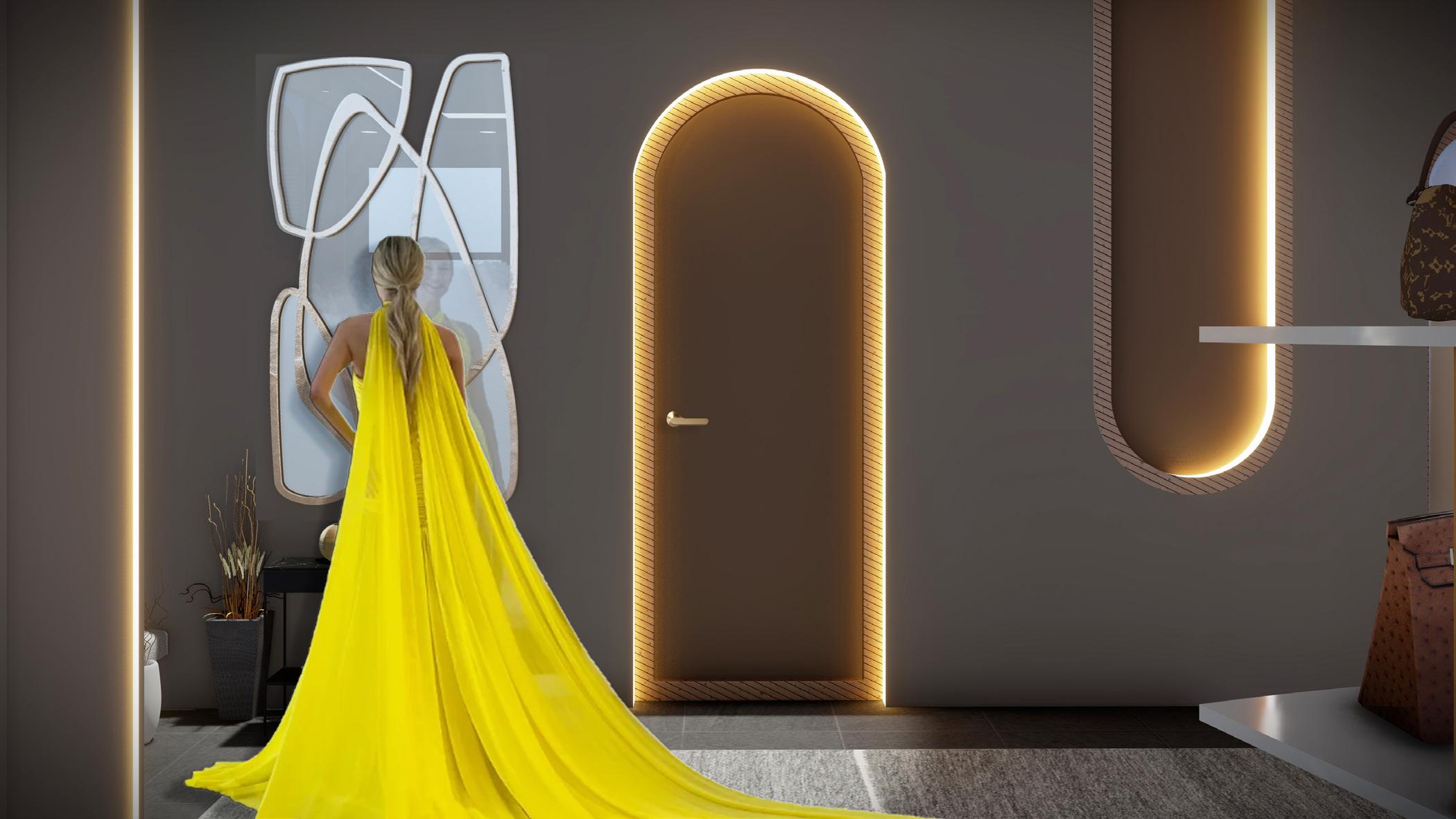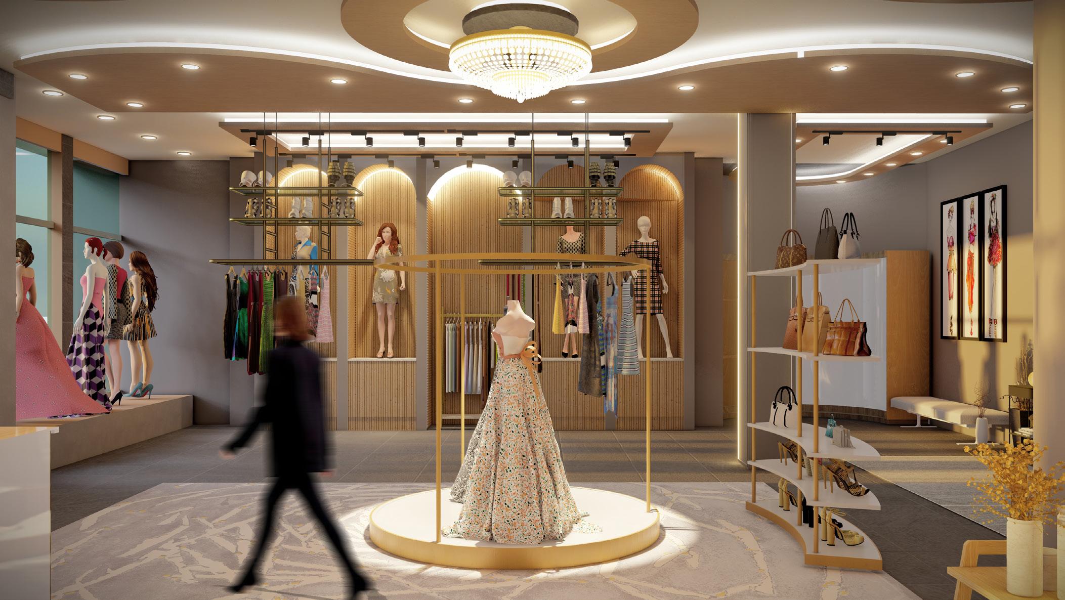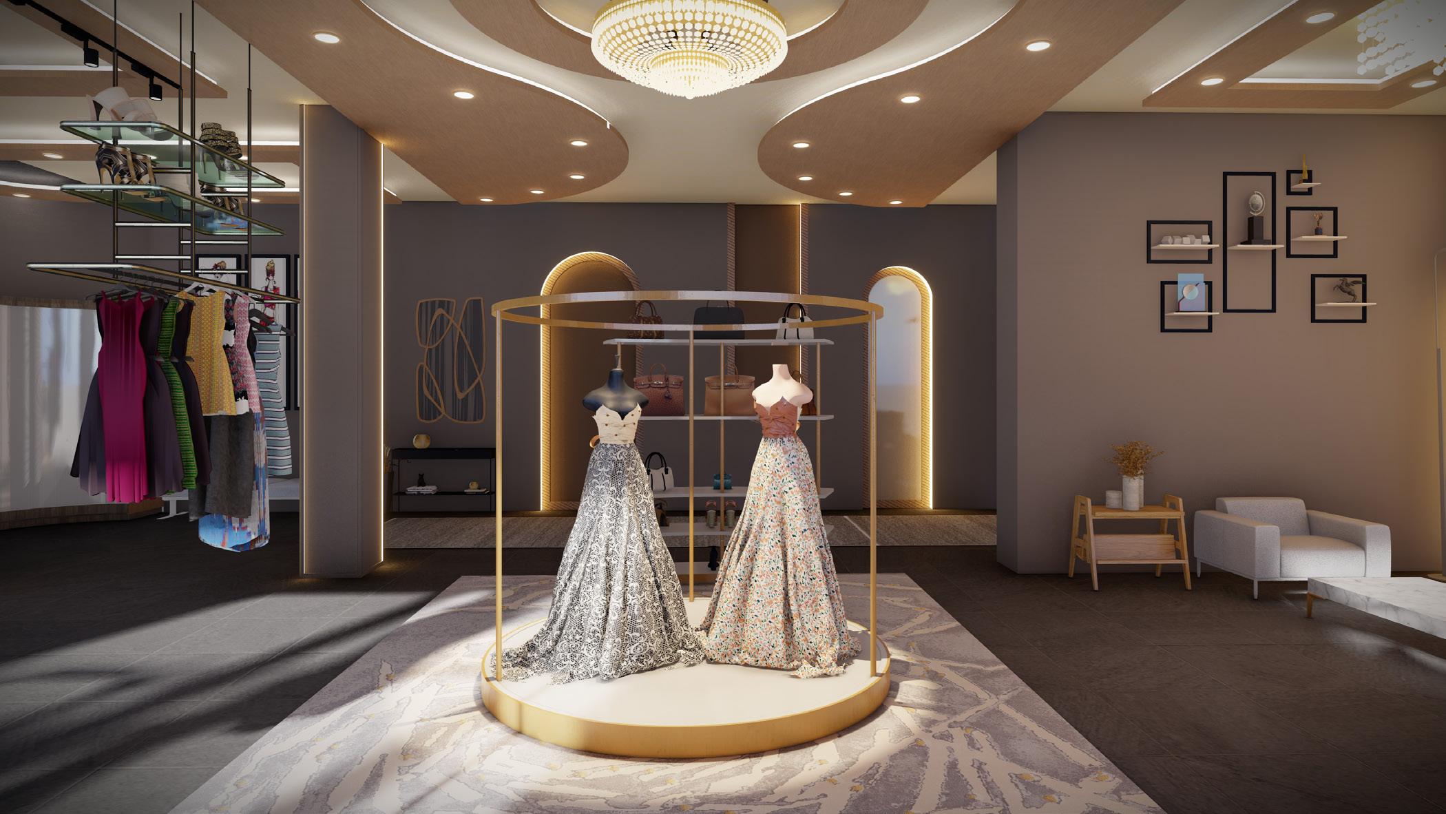 We created a space that has a soul. Creating a special podium where the new arrivals are showcased, which is focused since the first step through the entry of the boutique, is taken as a datum. As for how we were able to make the dresses speak is, muting the surrounding enclosures and neutral coloured furniture to direct the visitor’s eyes directly upon the vibrant fabric masterpieces.
