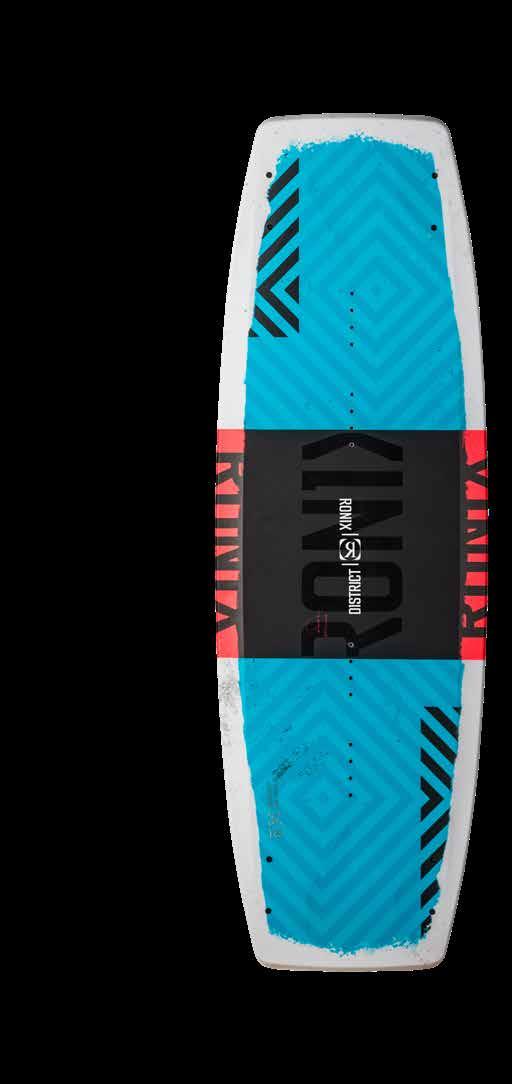 The chameleon of conforming wakeboards. This board has the rare trait of adapting to you, regardless of your style or ability. We took one of our best-selling all-purpose series that rides without stereotypes and made it lighter, delivering more feedback, and noticeably softer landings. The District, with its hybrid rocker, ranges from smooth/low maintenance turns to wide open high-speed cuts. With fast, predictable takeoffs, to explosive wake to wake jumps, this is a series that truly covers the spectrum. Riders that approach the wake flat into the wake will notice a strong, explosive 3-stage lift. If you approach the wake while on rail you will notice a smooth, blended rocker line with an uninterrupted fast take-off and landing. Riders who tend to distribute their weight evenly will experience a freeride, floaty feel when they initiate turns. On the flipside, riders can experience hairpin turns with quick edge transitions if they shift their weight to the tail of the board.