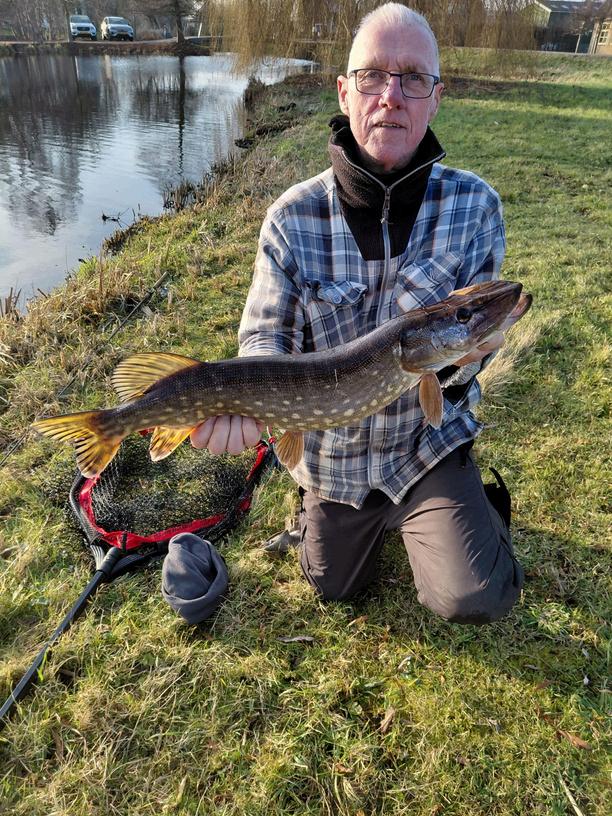 De Middag: Succes op de nieuwe stek Tijdens de rit naar de middaglocatie kregen we een bemoedigend appje: Kees had een snoek gevangen! Dat gaf de burger moed Na een gezellig praatje onderweg met onder andere, Haakon, Renee, Peter en de andere mannen, kwamen we aan op de nieuwe stek Direct gingen de hengels van Nico en mij weer te water: een voorn net boven de bodem en de makreel op de bodem Het geduld werd beloond Na een klein uurtje kwam er beweging in de dobber, die even later resoluut onder water schoot Met een flinke haal zette ik de haak en kon ik mijn eerste snoek van 84 cm landen Nog geen drie kwartier later liep de lijn van mijn bodemhengel met de makreel hard van de spoel Wederom een goede aanslag en snoek nummer twee was een feit! Hoewel de ochtend moeizaam verliep, maakte de middag alles goed Met een heerlijk zonnetje en een plekje uit de wind was het puur genieten aan de waterkant