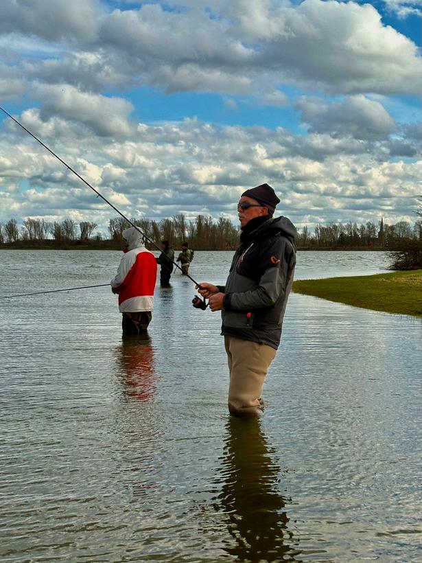 Al snel merkten we echter dat de hoge waterstand de dag een stuk uitdagender zou maken. Het water stond zó hoog dat het grasveld volledig verdwenen was en de bomen in het water stonden. Eén verkeerde stap, en je stond tot je middel in het water Niet alle stekken waren hierdoor goed bevisbaar