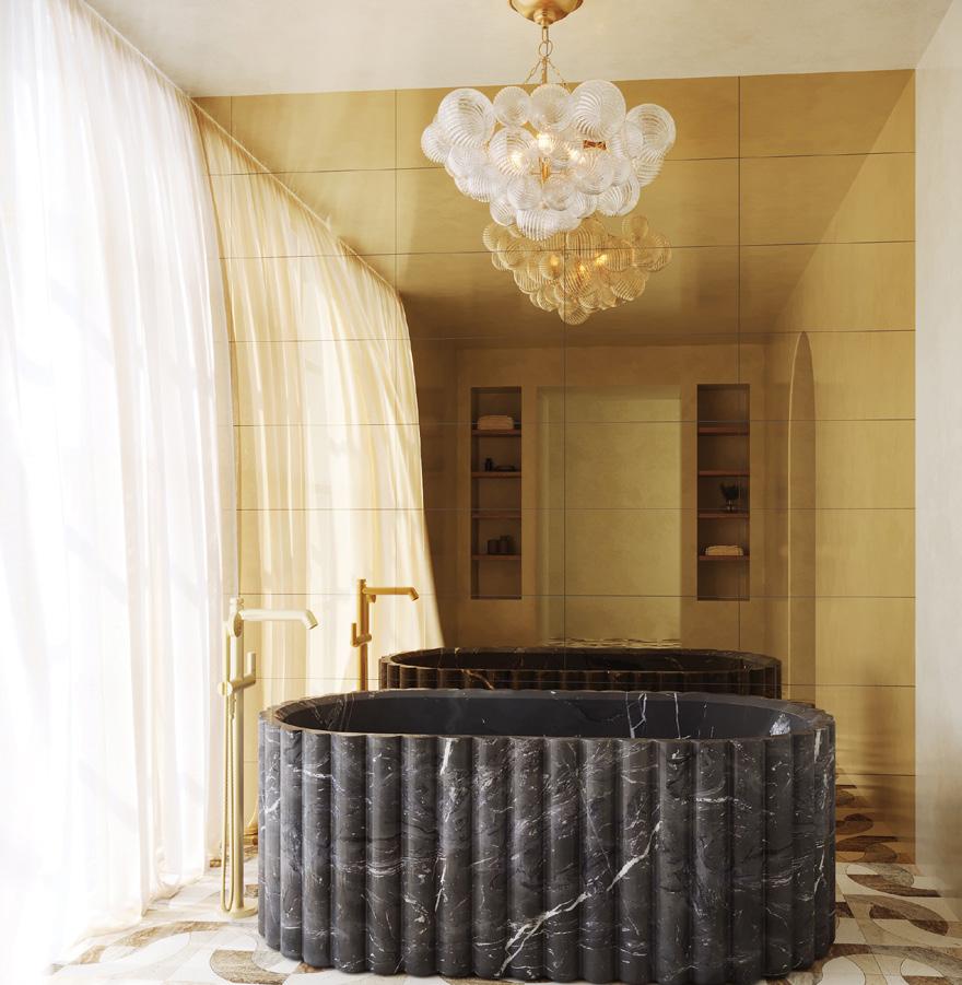 Amy and the homeowners opted for layers of neutrals in the primary suite. “I love simple; simple doesn’t have to be boring,” Amy says. Polished nickel and marble are timeless selections in the bathroom, where the vanity offers his-and-her sinks for getting ready. “We wanted something to stand the test of time and be classic, and when we saw those faucets we knew we had to have them,” the designer says. “Those were our starting point.”