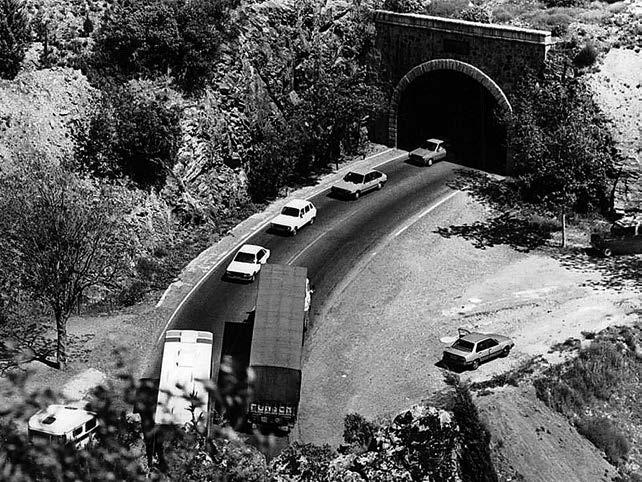 Las carreteras históricas, con su componente paisajística, son una oportunidad para el recorrido de paisajes que no serían entendidos sin su presencia, en donde sus meno res exigencias funcionales son una oportunidad para recorrerlas por otros medios, incluso con los vehículos a menor velocidad, por su integración actual en el pai saje, a una escala distinta de las carreteras modernas. Identificarlas, incluidos los tramos que permanecen de las carreteras del XVIII, del XIX o del Circuito de Firmes Especiales, es una labor que va a llevar tiempo, pero es un acto necesario para poner en valor este patrimonio cultural de las obras públicas, que abarca también sus trazados y sus obras de fábrica, con toda la documenta ción de los proyectos a los cuales podemos acceder desde el Archivo de la Administración de Alcalá de Henares o desde los archivos de los proyectos de las carreteras de las Jefaturas Provinciales.