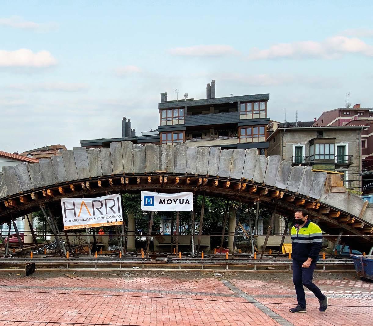 un contexto de precariedad en un modelo de gestión hidráulica moderno y eficiente. Uno de los aspectos más interesantes del libro es la manera en que se subraya la relación entre ingeniería y arte, un vínculo poco habi tual pero que, en el caso de Elósegui, fue una constante. En el caso de la presa de Arriarán, es patente esta inquietud porque plasma de forma brillante esta unión. La escultura Urbidea de Néstor Basterrechea dota de gran belleza y espectacularidad a la presa. Además, se comenta el interés que tuvo por el arte efí mero, constituido por los encofrados y las cim bras en las obras públicas. Este es un aspecto muy de agradecer dado el poco valor que se suele dar a estas construcciones auxiliares. Tras una breve introducción, los tres pri meros capítulos del libro están dedicados a ex poner la planificación, definición y ejecución del abastecimiento de agua en Guipúzcoa. En