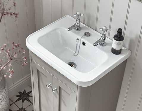 Halcyon’s ceramic basin perfectly complements the classic styling of the units, and are available with one or two tap holes.