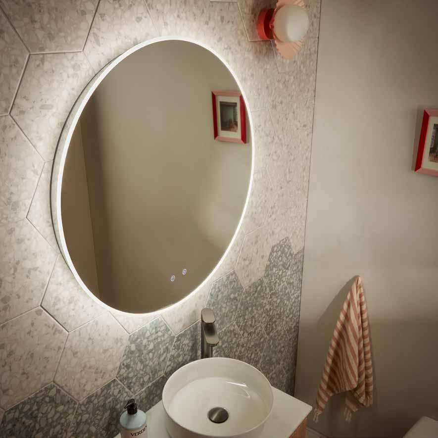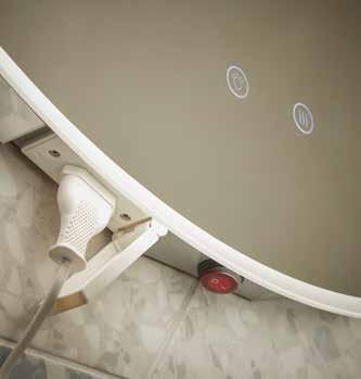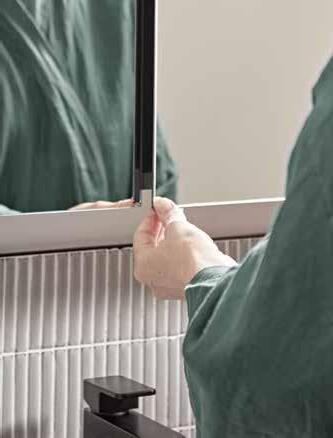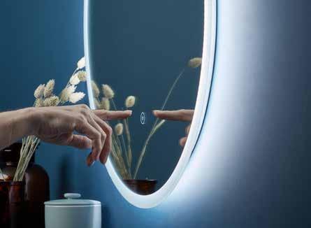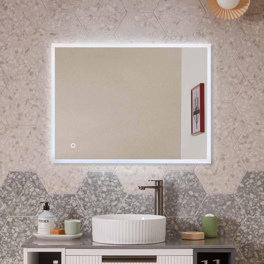 A sleek, modern mirror that reflects your wall finish for a floating effect, Levitate features discreet touch sensor for effortless control. Equipped with a heated demister, Levitate ensures a crystal-clear reflection even in the steamiest conditions. The integrated shaver socket offers convenience, while the adjustable warm-to-cool LEDs allow you to set the perfect ambiance.