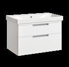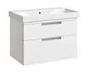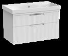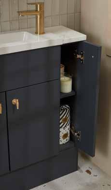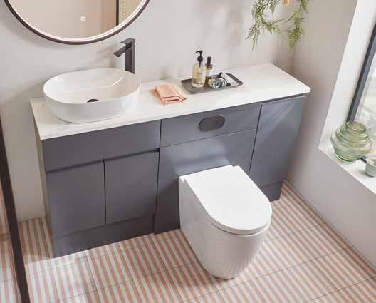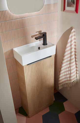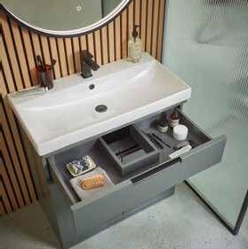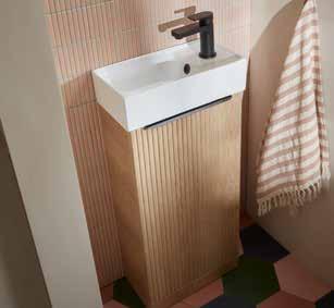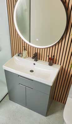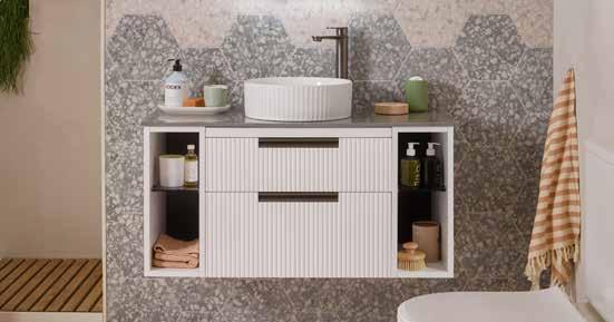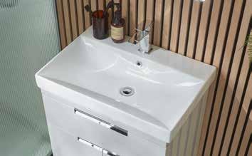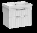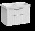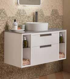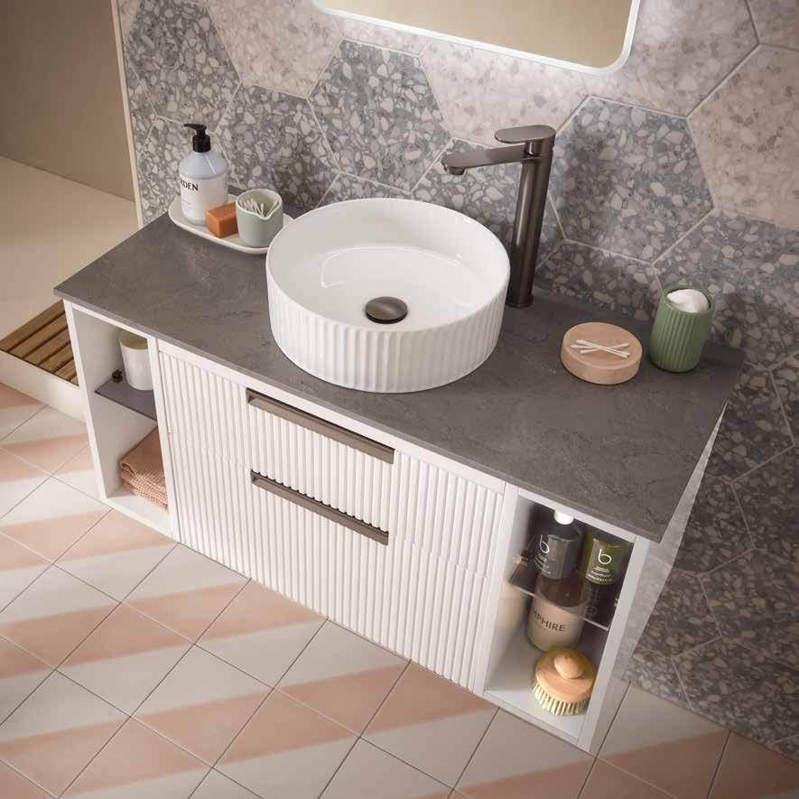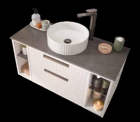 Bathroom furniture available in four sizes and two styles (Slab & Fluted) with soft close drawers and doors.