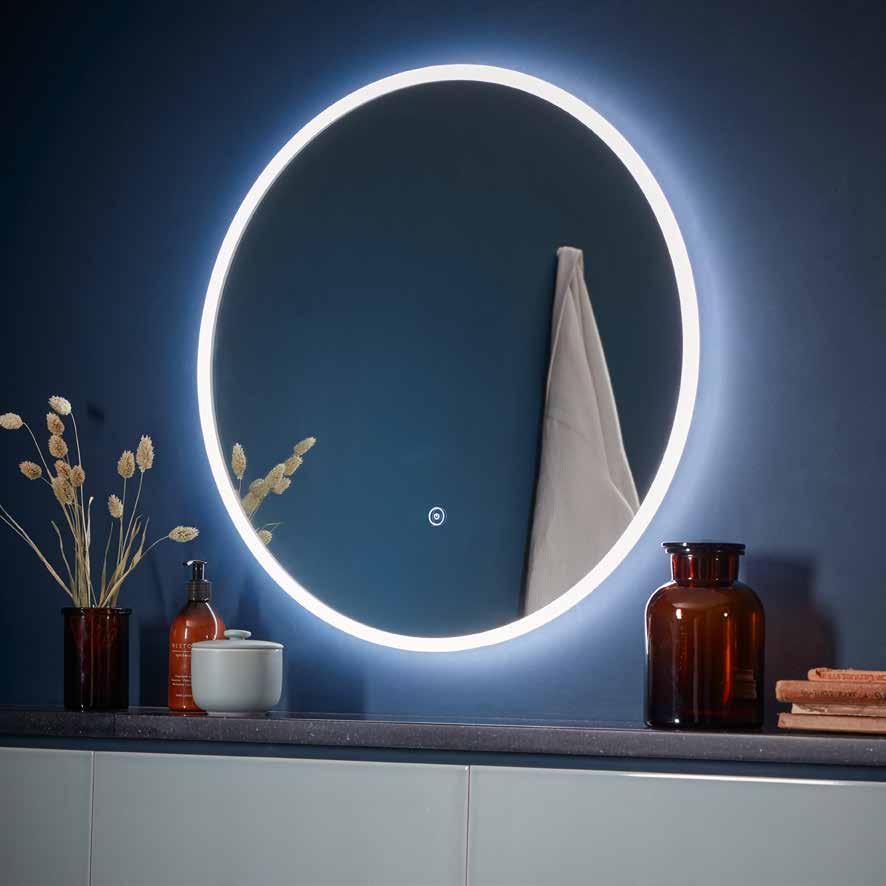 Available in both round and rectangular styles, the Nouveau mirror features a slim, stylish black frame and bordered LED lighting which is effortlessly controlled by touch sensor. Nouveau also includes our demister pad technology, making steamy bathroom mirrors a thing of the past.