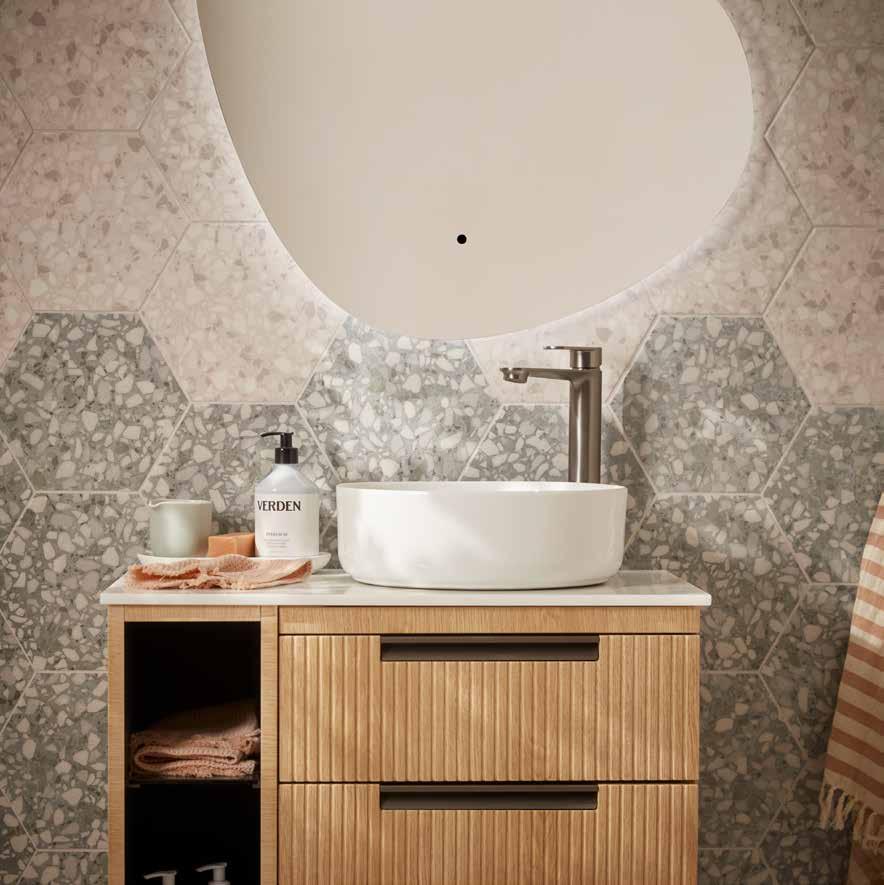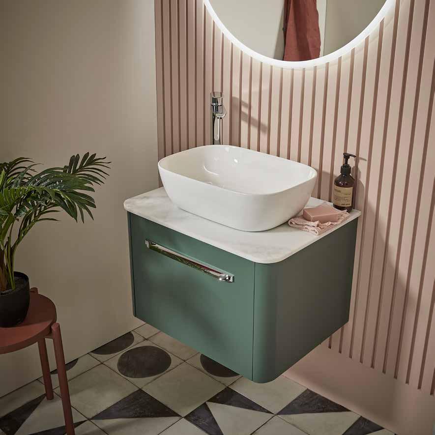 For a hotel inspired look, opt for one of our seven stylish countertop basins, with three countertop finish options. See pages 128-129.