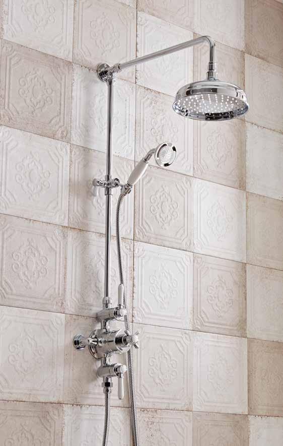 thermostatic control for safe showering Includes easy fix brass shower arm and elbow