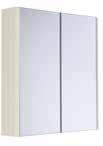 This simple, 600mm wide mirrored cabinet features two soft close doors, with one fixed internal shelf and a soft white finish.