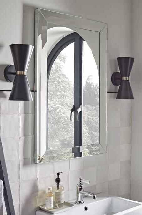 • Black or brushed brass frame around the outside of the mirror.